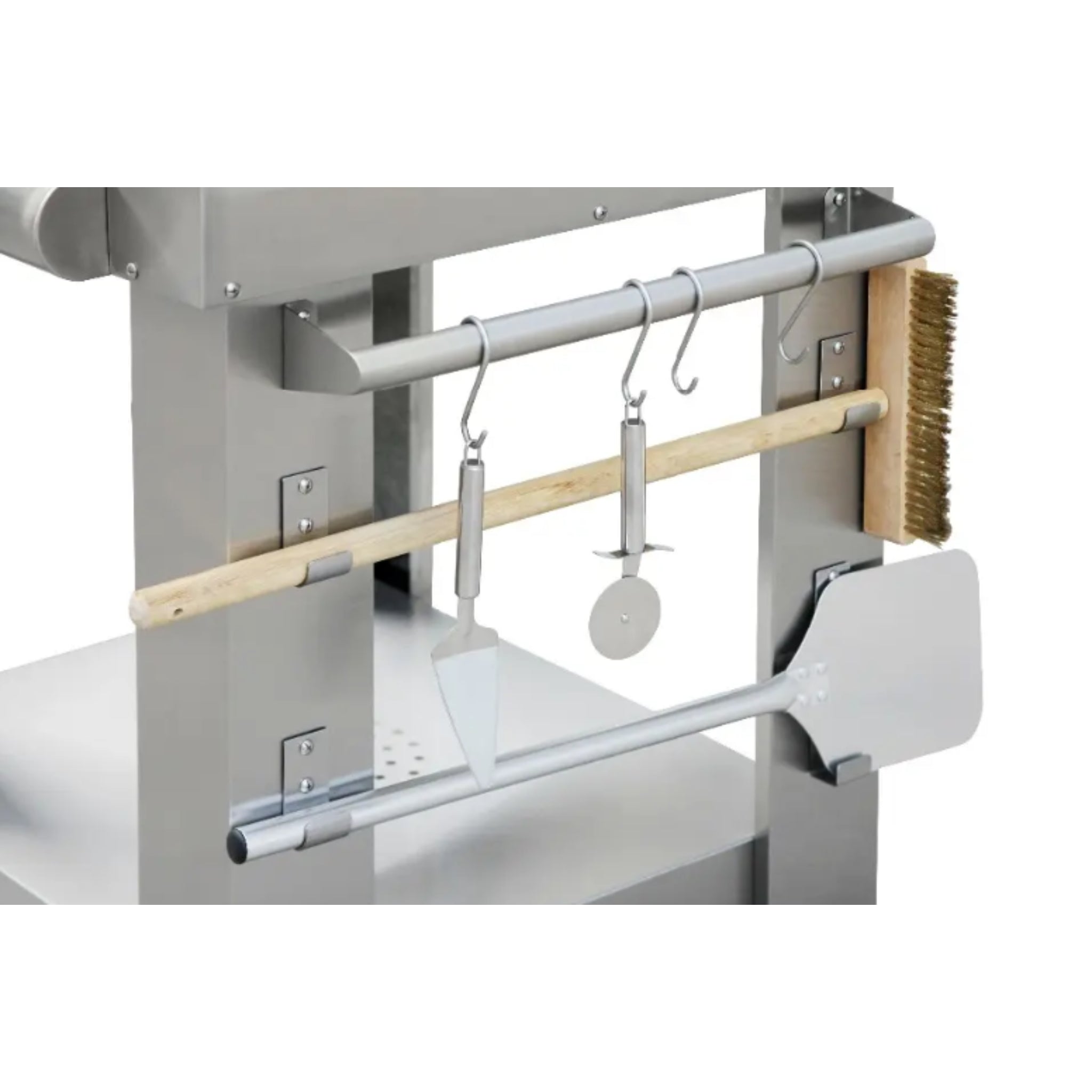 Storage Capacity: Full-width lower shelf plus side trays for peels and fuel